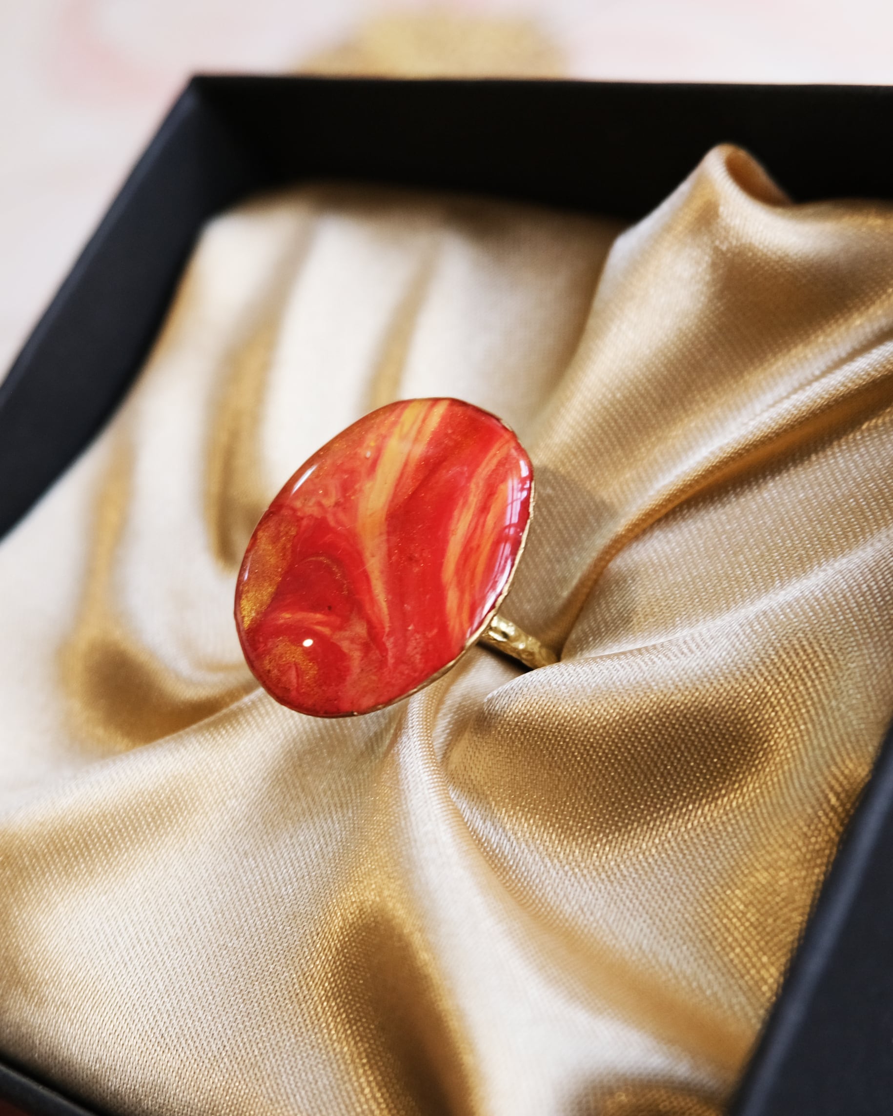 独創的な存在感を放ちながらも、肌なじみ良く構成された色彩バランスで着ける人の個性を引き立たせます。