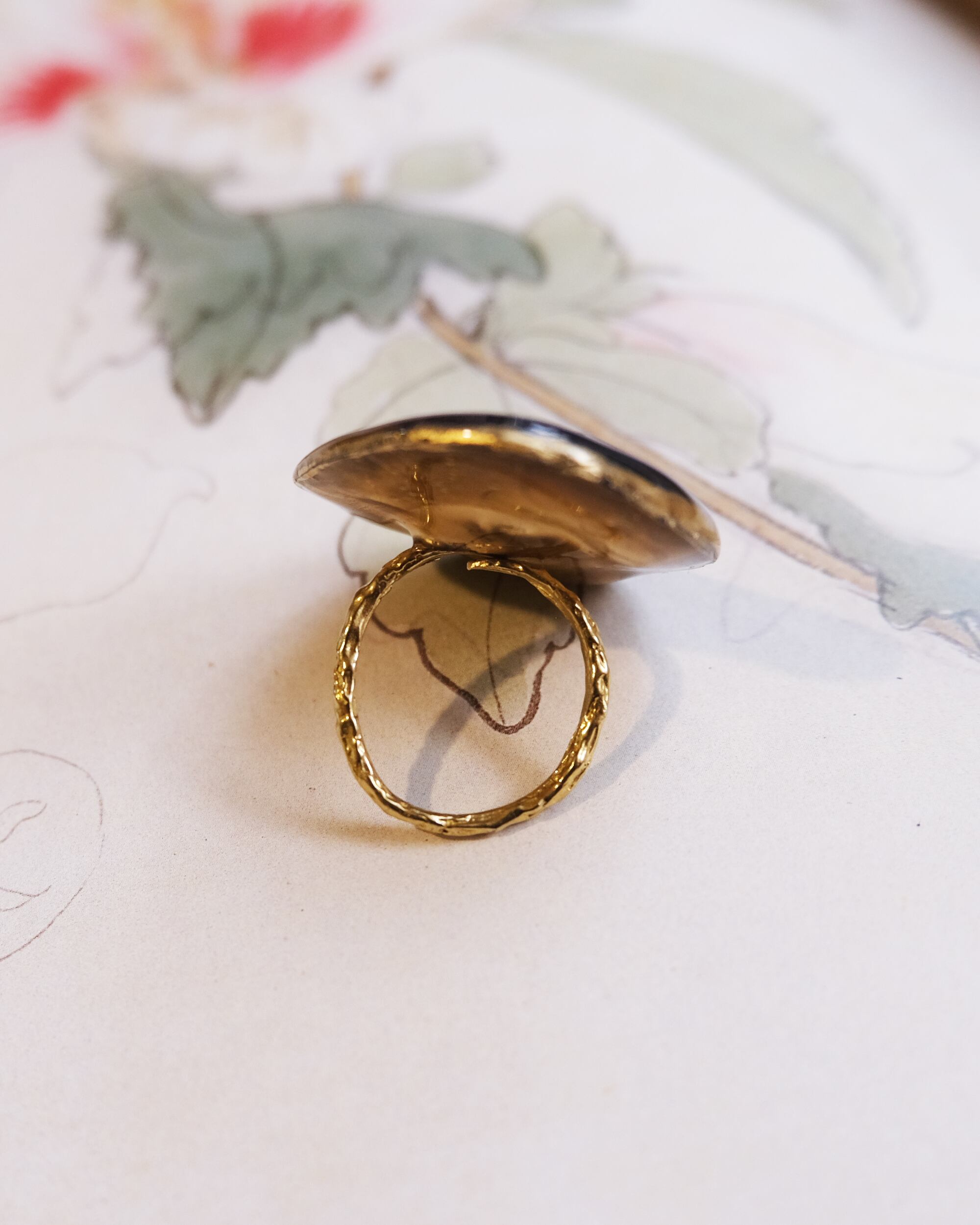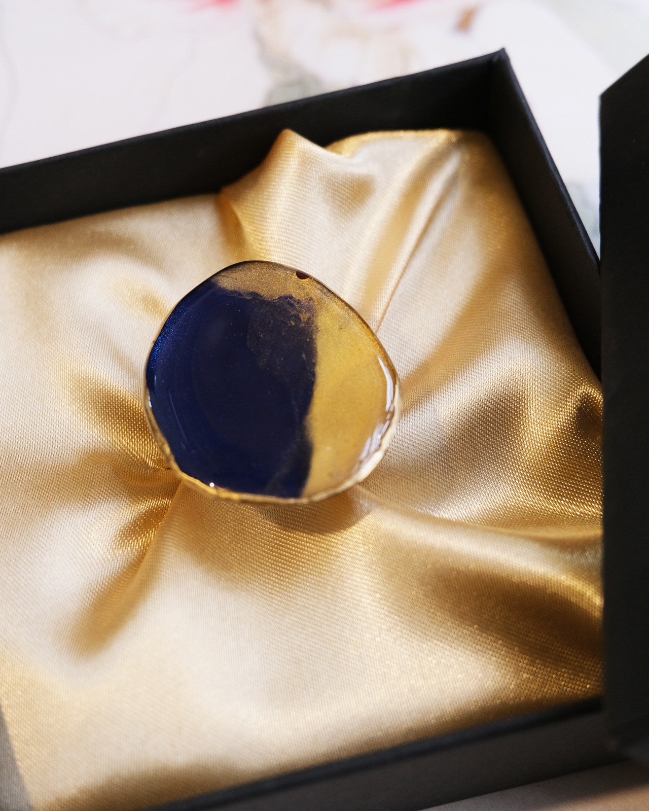 独創的な存在感を放ちながらも、肌なじみ良く構成された色彩バランスで着ける人の個性を引き立たせます。