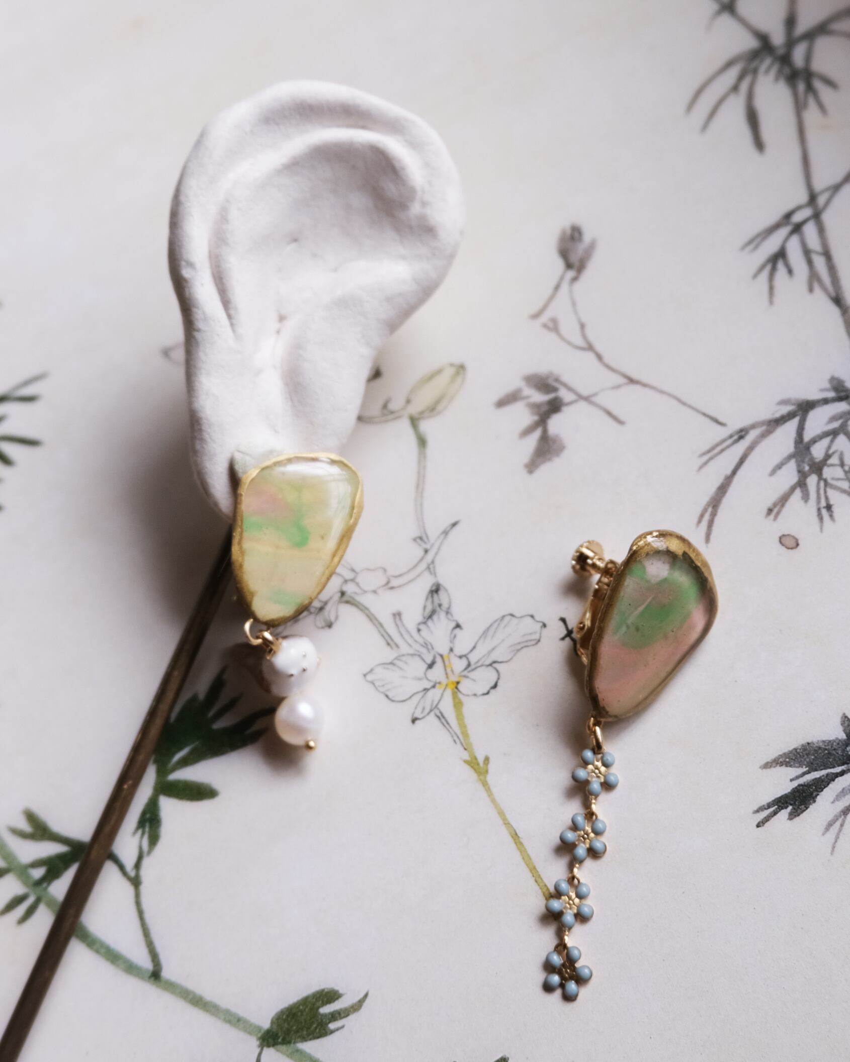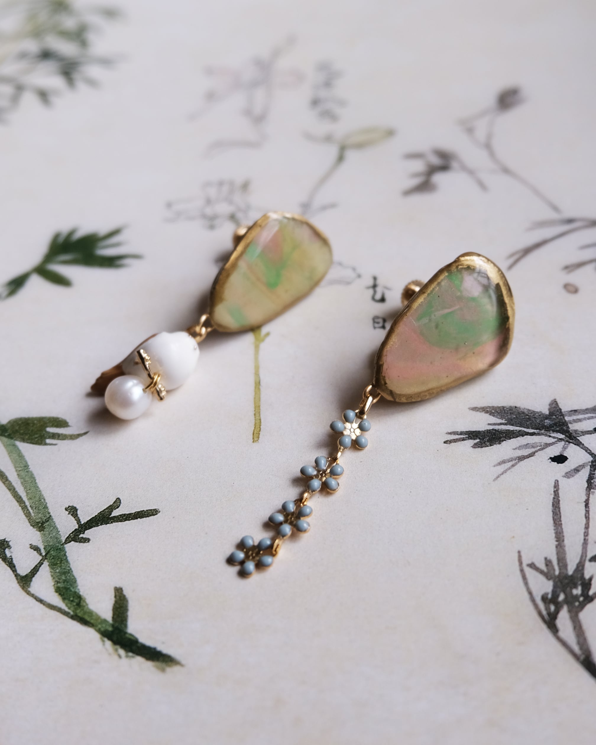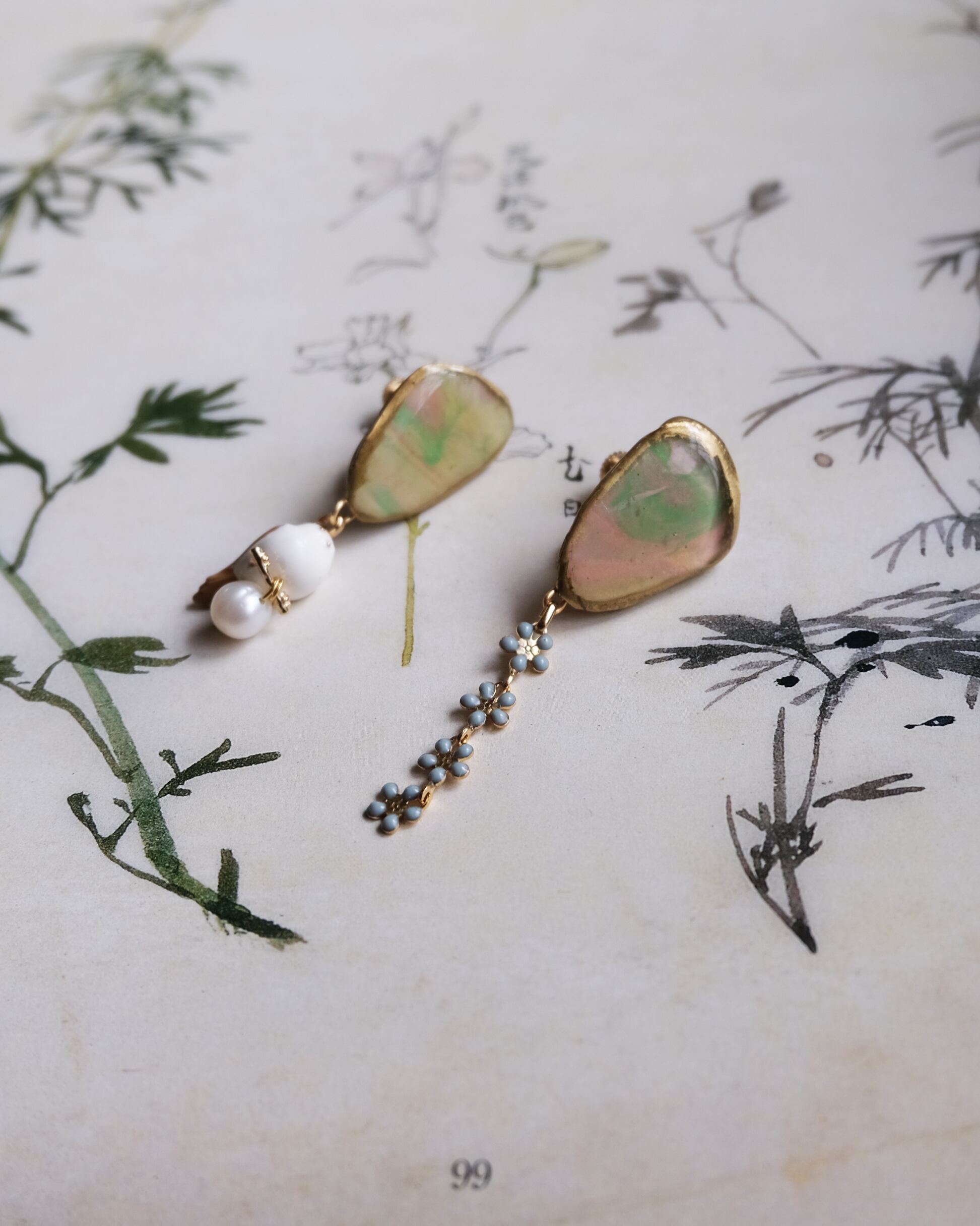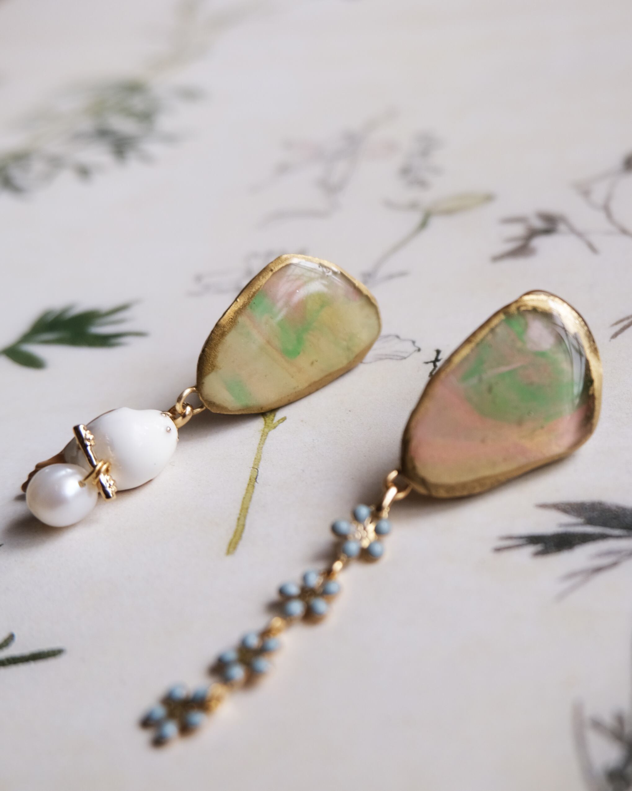 スターダストペインティング、樹脂、真鍮、淡水パール