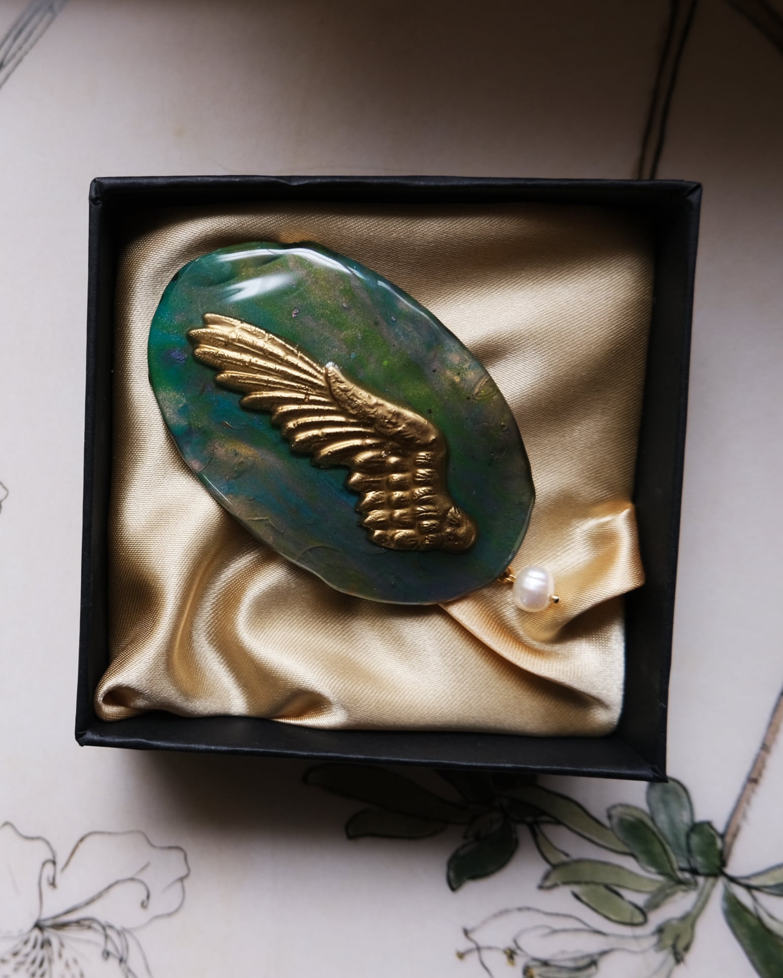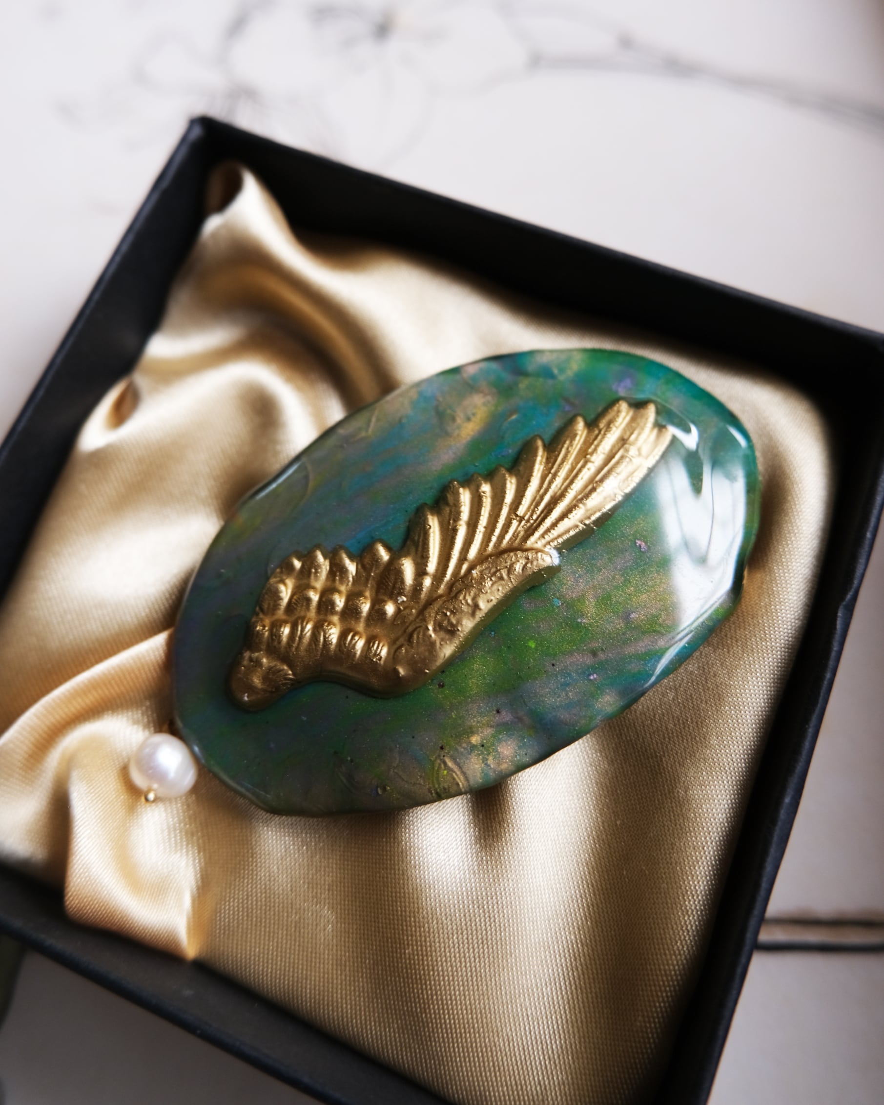 羽のモチーフ印象的な一点になりました。